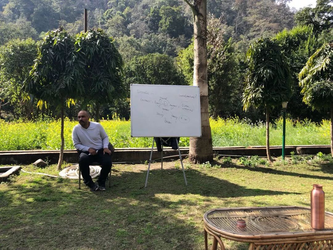 还有晚上的satsang,它其实不算是课程,而是一个类似分享的座谈会,也是印度的传统。每天睡前我们全班会抱着枕头毯子,在教室里围坐成一圈,分享自己今天的心情或者任何想要讲的故事,没有老师或助教参与,完全由我们自己发挥。