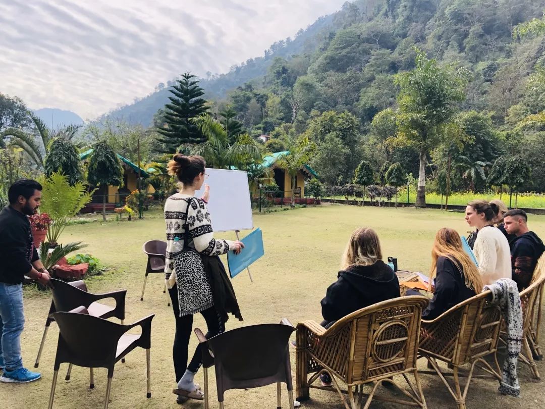 只要你的英语足够日常交流就可以。由于英语和印地语同为印度官方用语,大部分印度人的英语水平都不错,即使是村里的小商小贩也会说一些简单的英文。瑜伽学校都是全英文授课,老师们英语都非常好(除了会有些严重的印度口音,但习惯就好)。我们同班也有英语非常差的日本同学,他一开始要跟上课程节奏就会有些吃力,因为体式课他听不懂口令、哲学课也无法参与讨论,但一个月下来他的英语有很大提高,所以我觉得这也是一次很好的练习英语的机会。