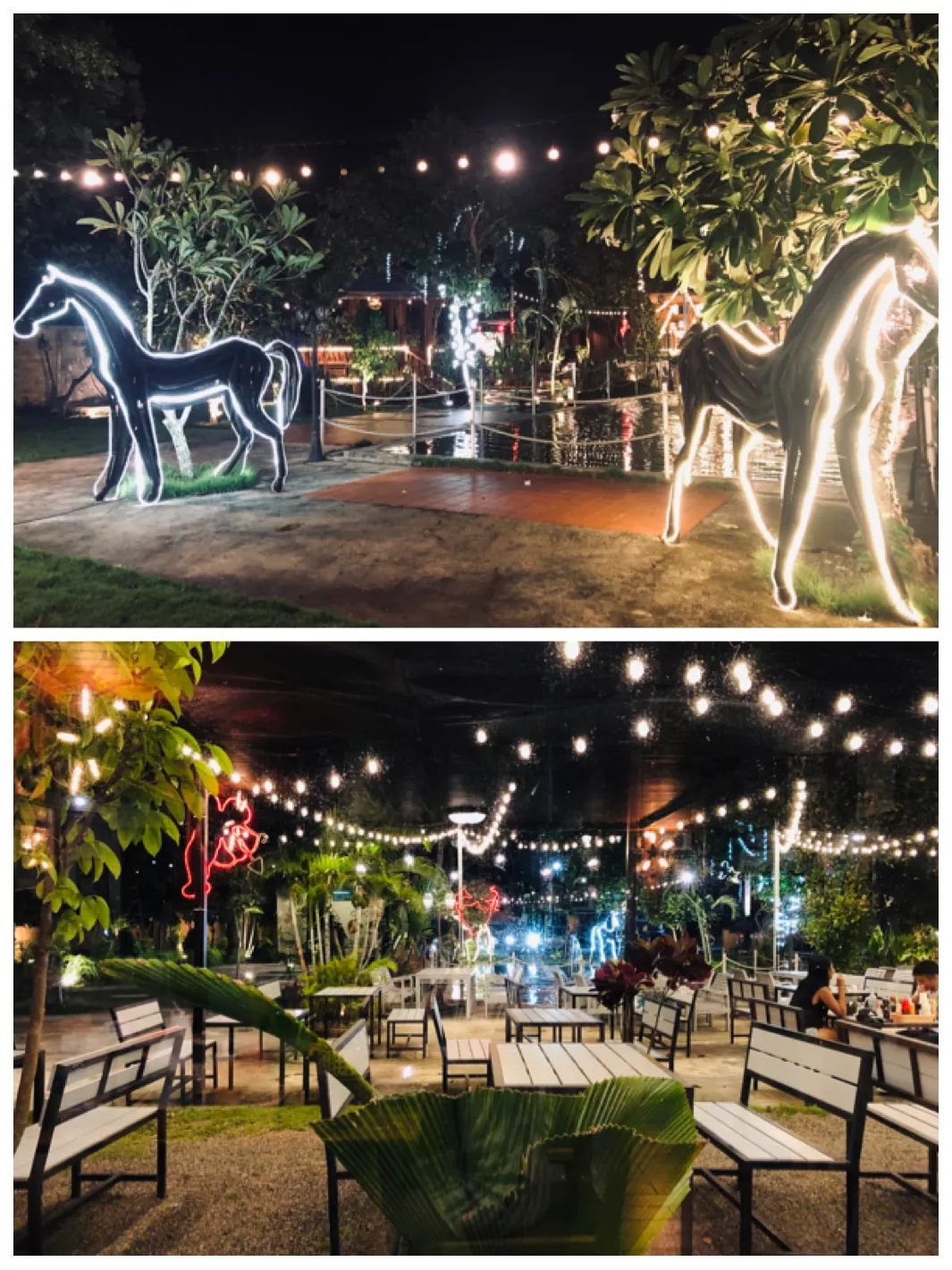 进入餐厅会先路过一个大院子,好像一个农场一样,里面到处都是彩灯,随手一拍都很梦幻,颇有网红元素。