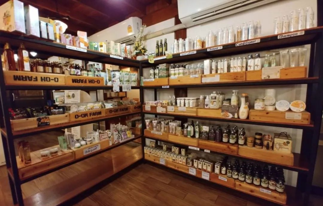 等上菜的空档我在店里四处转了转,发现这里竟然也售卖自己生产的有机产品,有食物例如麦片、茶等,也有椰子油、身体乳、唇膏、护手霜,算是一个跨界生活方式品牌?